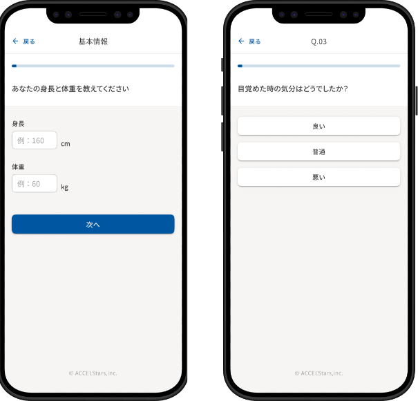 7日間測定(1日の練習を含む計8日間)健康経営・市民健康増進等に関心が高い企業・自治体を対象にして2023年5月より提供。すでに大手数社でトライアル実施済。睡眠は寝れていると思っていても寝れていなかったり、その逆もあるため主観と客観的な観点からも反映してフィードバック。